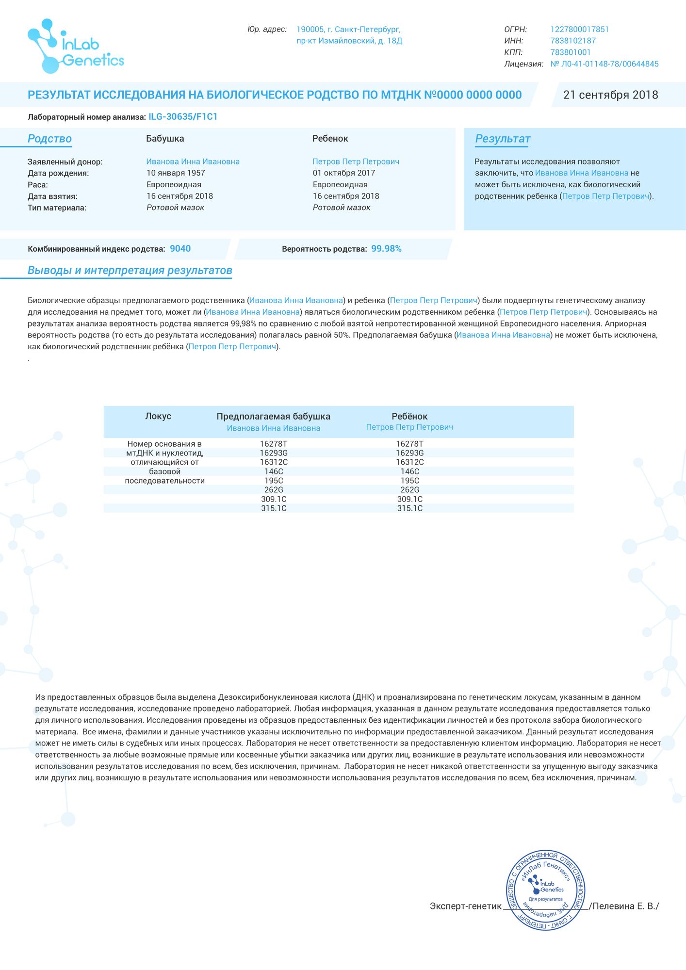 Лаборатория имеет полную аккредитацию и сертификацию. Заключения являются подробными и развернутыми. Генетическая экспертиза ДНК становится основным доказательством в судебных спорах и принимается всеми судами и государственными учреждениями Беларуси.