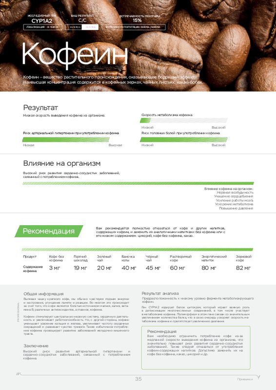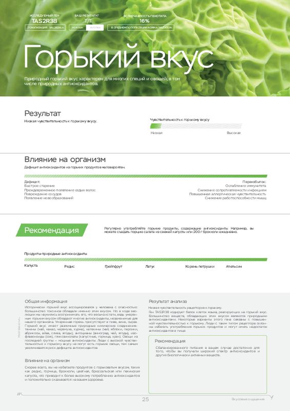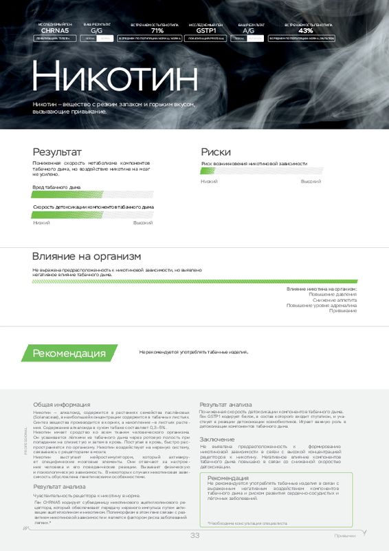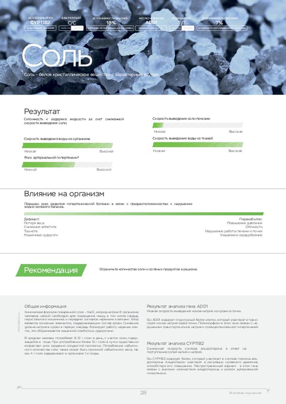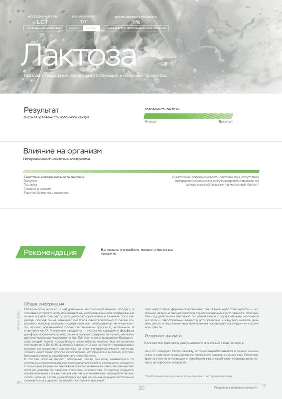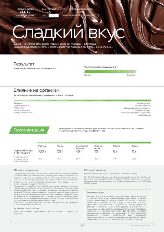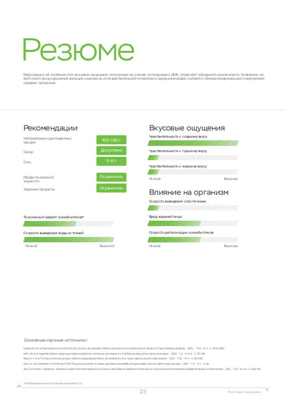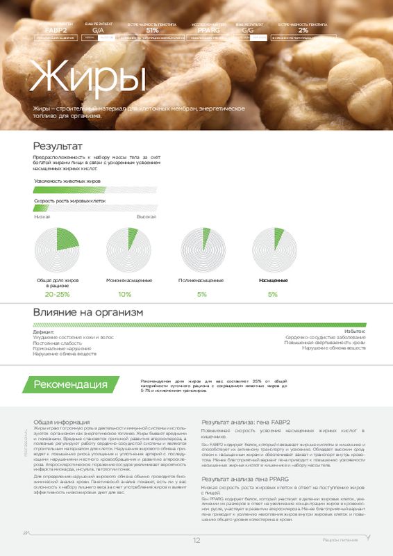 Этот ДНК анализ показывает, к каким физическим нагрузкам человек расположен генетически, а также какие продукты (содержащие определенные элементы) лучше употреблять в пищу. У каждого человека свои цели, кто-то хочет просто сбросить лишний вес, кто-то увеличить силу мышц, а кто-то нарастить огромные мускулы. Для получения максимальной отдачи от тренировок мы рекомендуем пройти наш генетический тест для фитнеса в .
