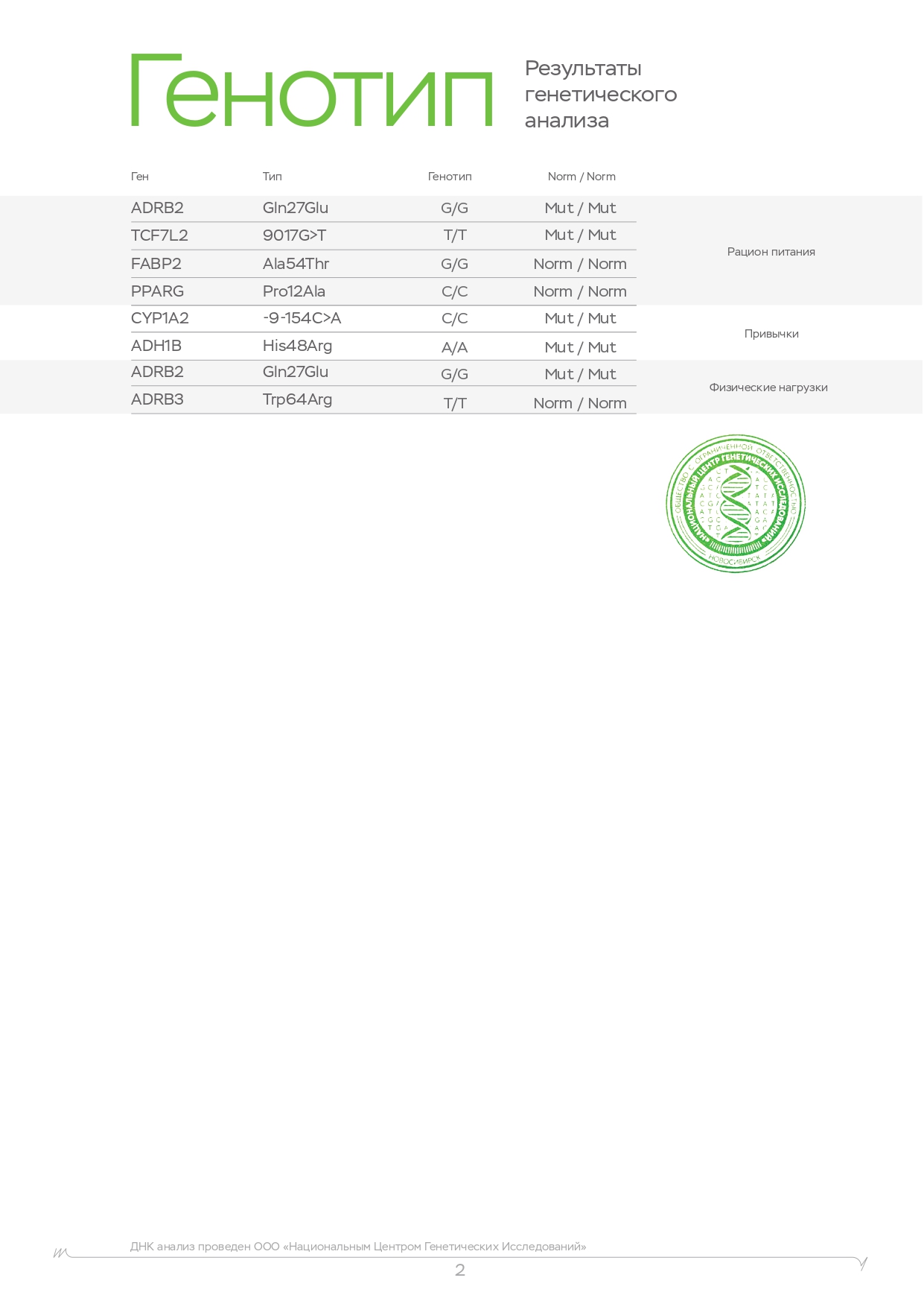 Точность этого ДНК исследования высочайшая и достигает 100%. Для абсолютной точности результата ДНК анализа для фитнеса лаборатория проводит параллельно два теста разными группами специалистов. Затем результаты заверяются подписью заведующего и печатью лаборатории.