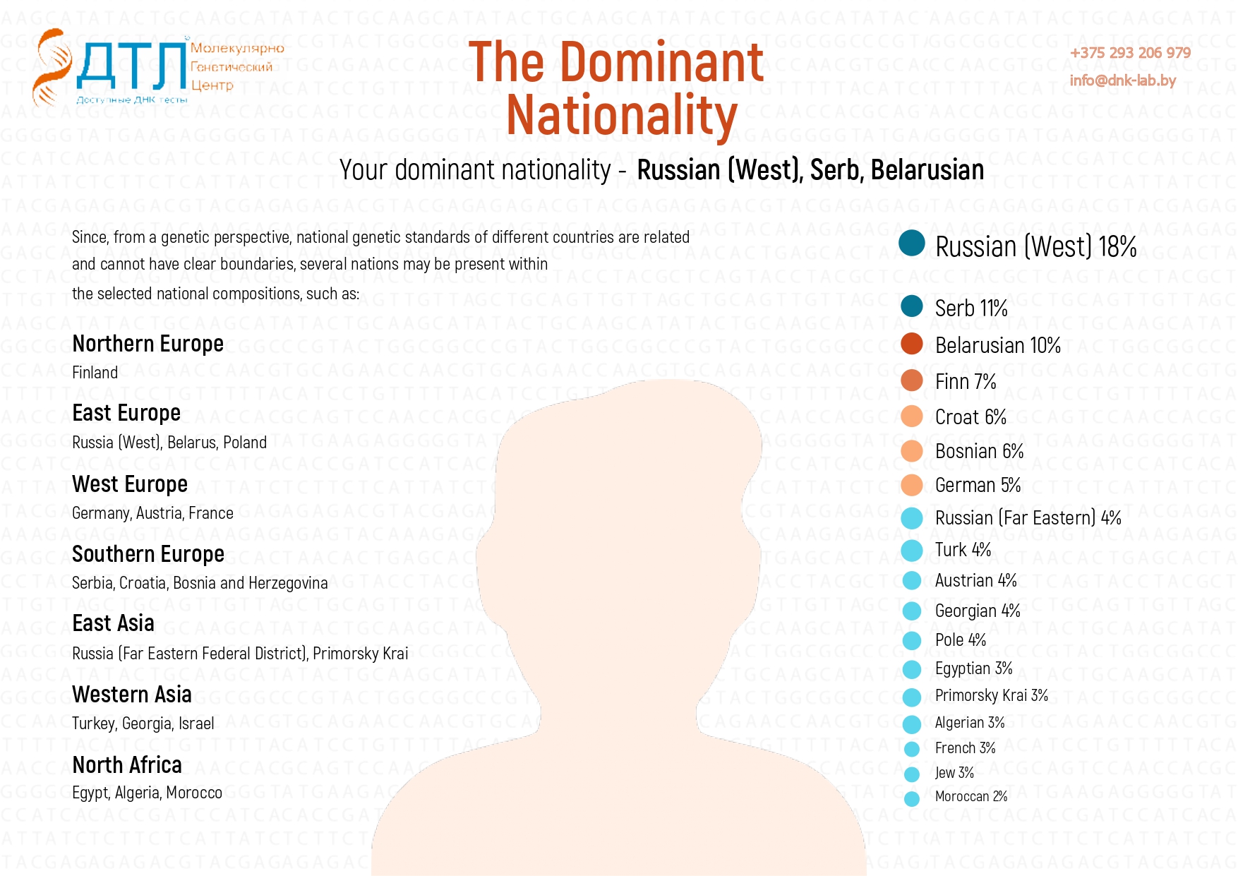 The laboratory has high-tech equipment for conducting DNA genealogy analysis. However, this is not the leading factor why our laboratory is number one in Belarus for DNA genealogy testing. The main factor is that we have international-level specialists with years of experience in DNA ancestry testing. Bioinformaticians perform analysis on a DNA database containing a large sample collection from around the world, giving us the ability to determine anyone’s ethnic origin through their DNA.