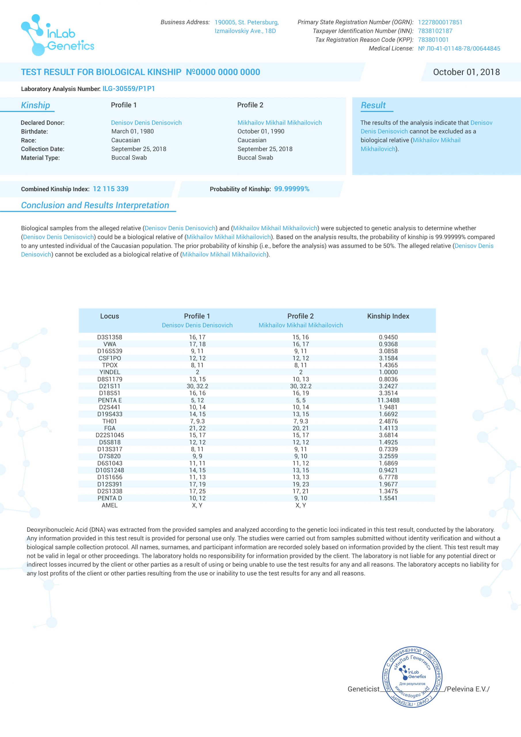 Our laboratory holds full accreditation and certification, and our reports are comprehensive and detailed. A DNA paternity test provides essential evidence in legal disputes and is accepted by all courts and governmental institutions in Belarus.