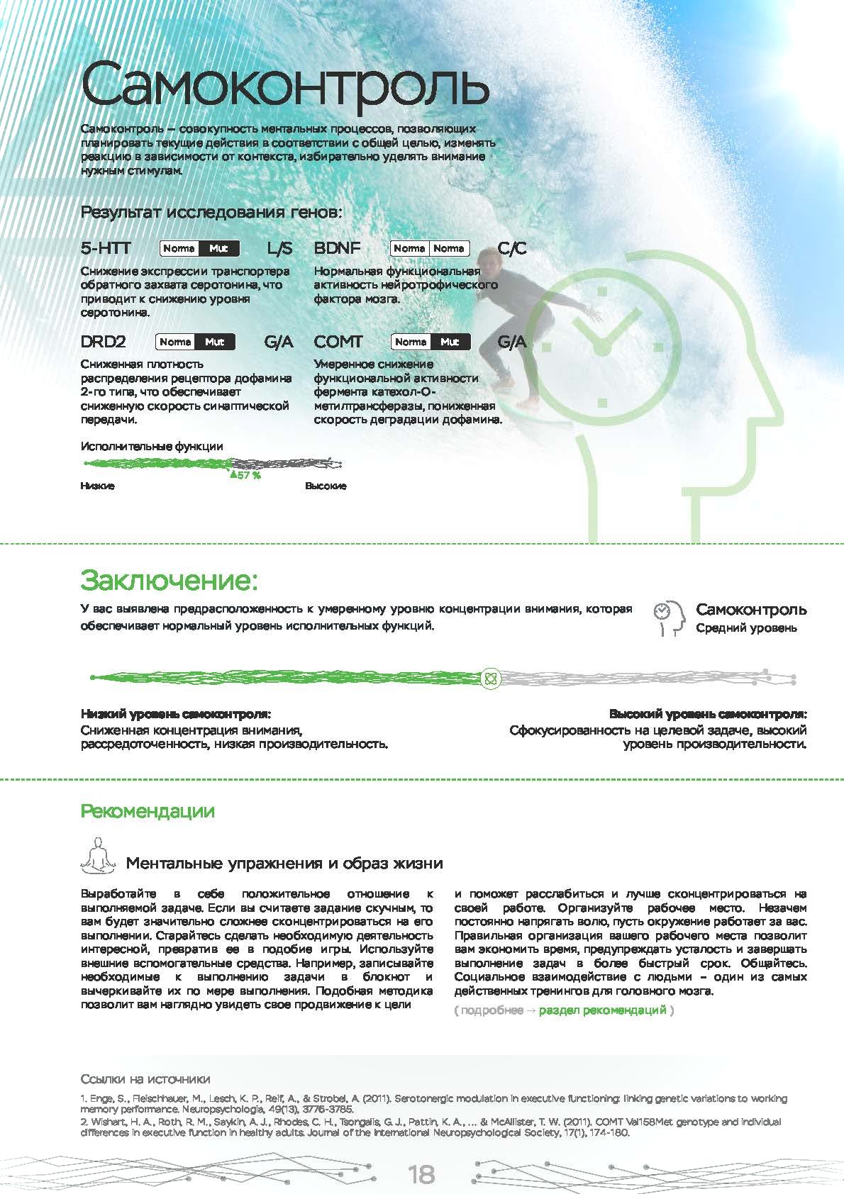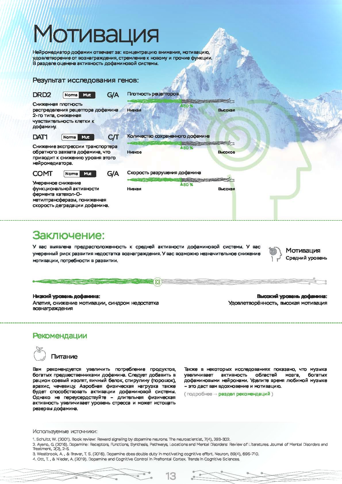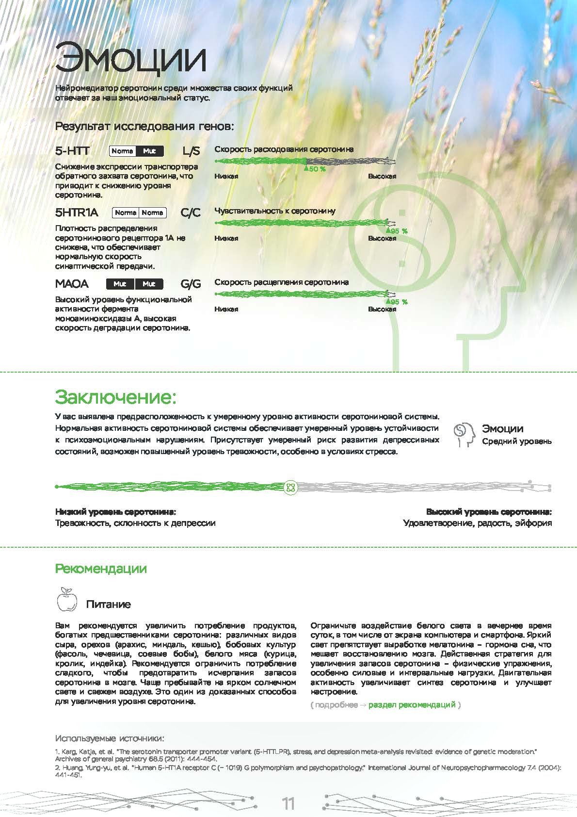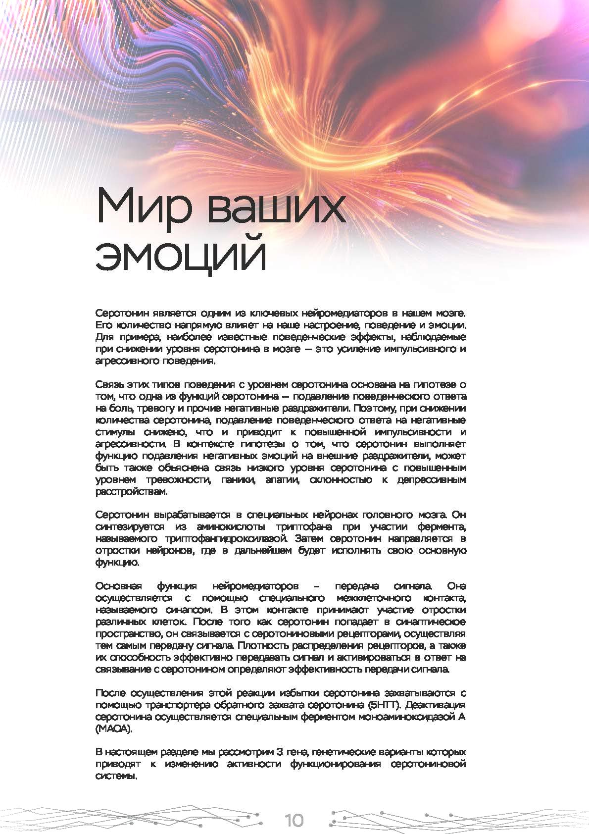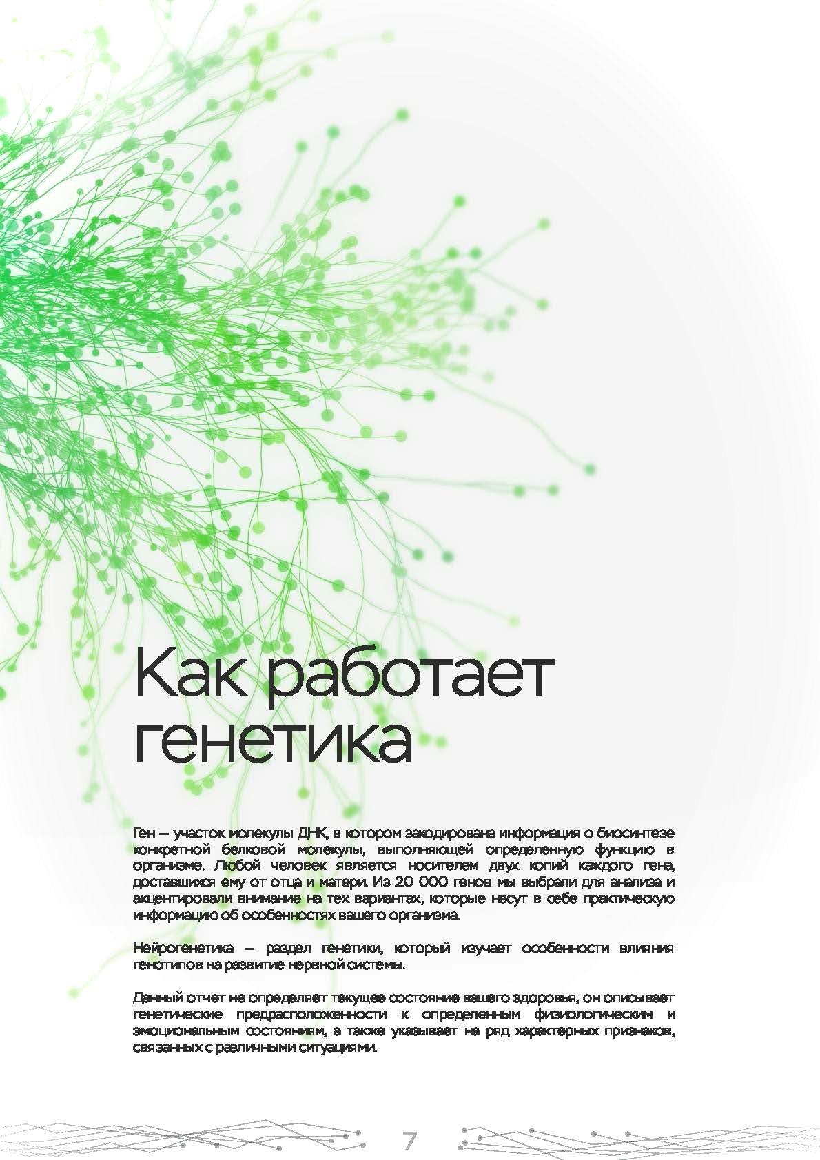 Emotions and mental states are regulated by neurotransmitters — special chemical compounds that control the transmission of electrochemical impulses between neurons, as well as between the brain and muscles. The intensity of neurotransmitter activity is determined by genes. By analyzing certain genes, it is possible to enhance productivity, well-being, and reduce stress levels.